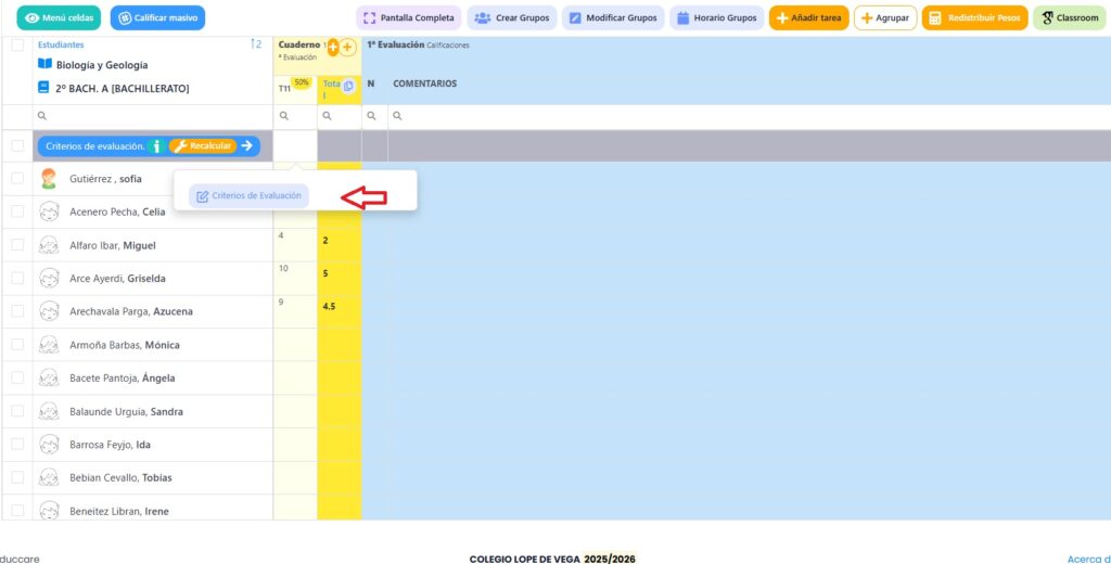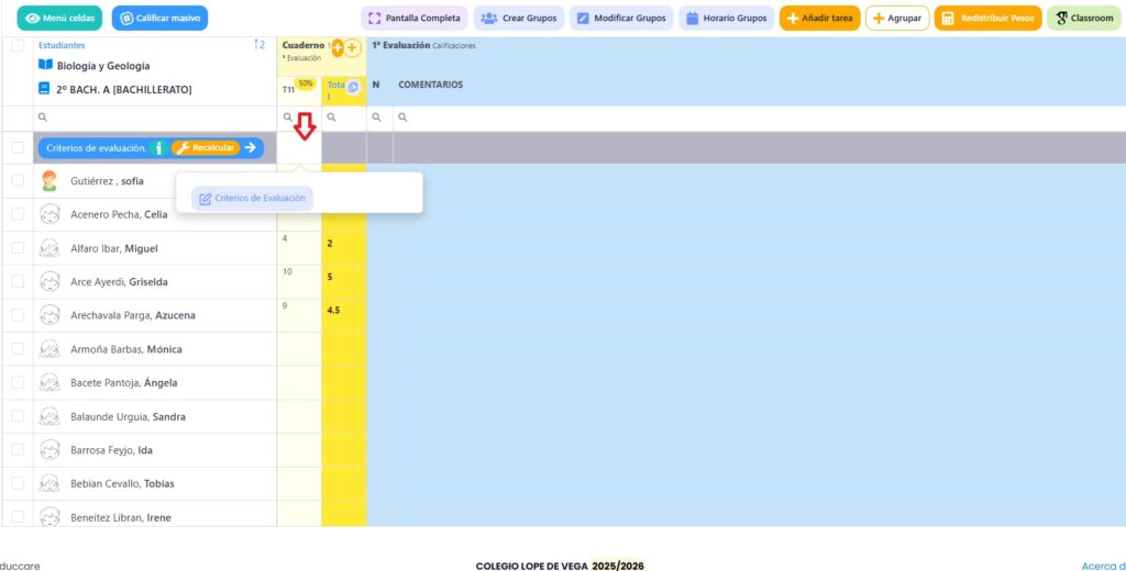 A partir de ese momento, las calificaciones que pongáis en la tarea también se las estáis poniendo en esos criterios de evaluación.